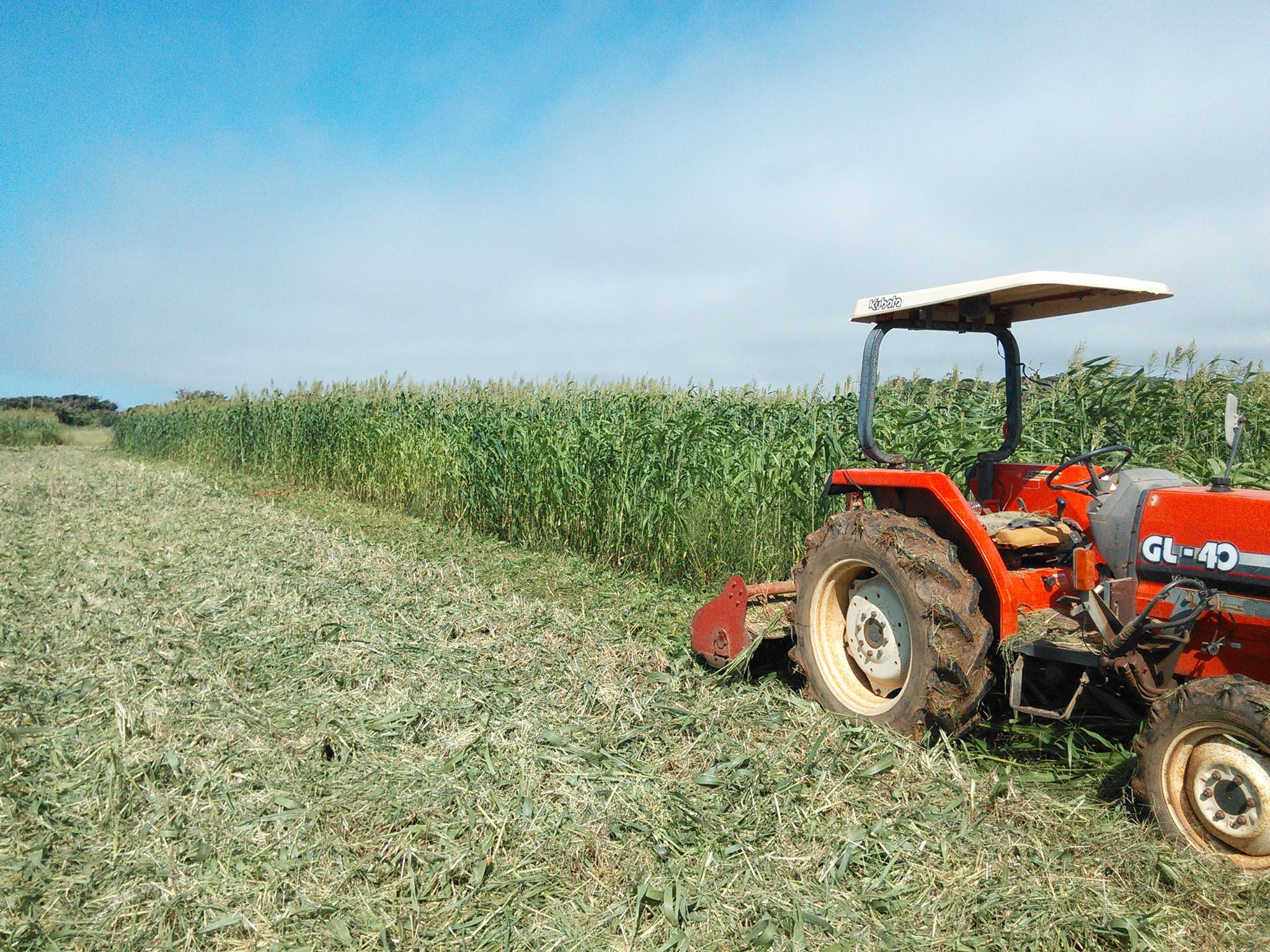 緑肥とは、植物を枯らしたり腐らせたりせずそのまま土壌にすき込んで肥料とすることで連作障害の軽減、地力の低減を最小限に抑える事ができ、皆村農園ではソルゴーを使っております。