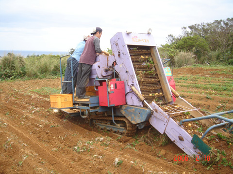 また、沖永良部島の季節風は強くその強風で馬鈴薯の葉や茎が痛めつけられてしまう事があるので、それらを防ぐために 防風ネットを設置します。